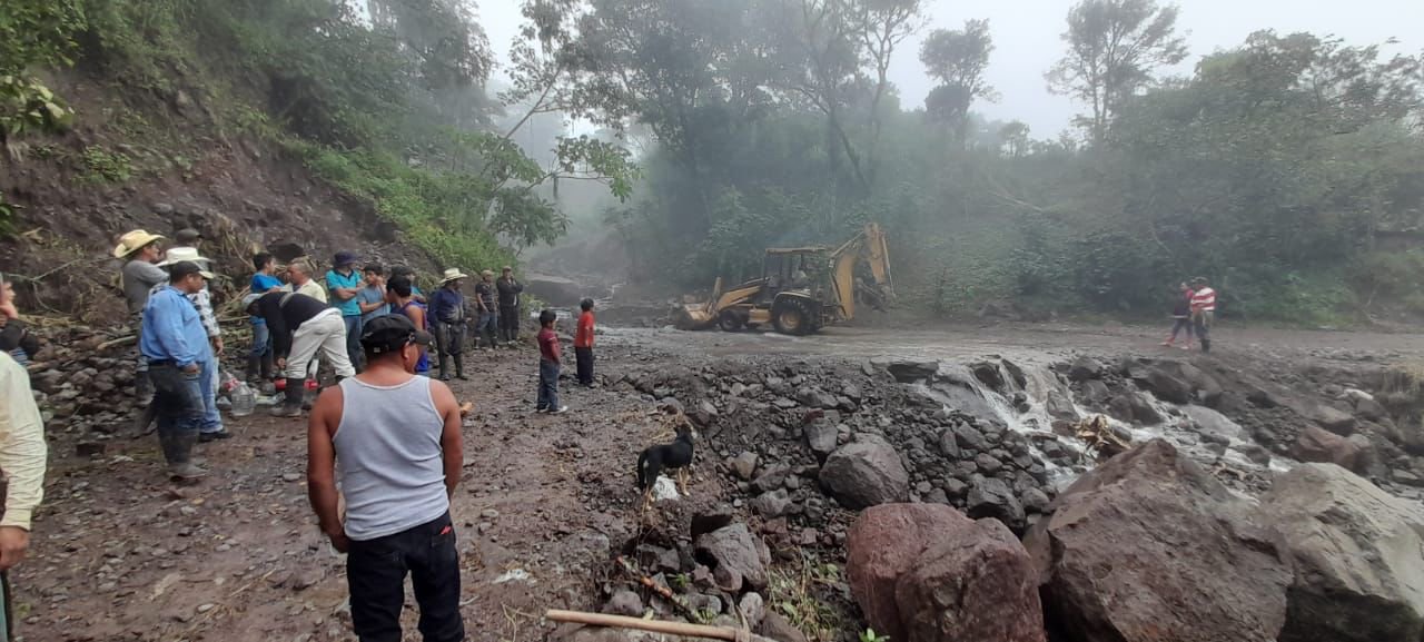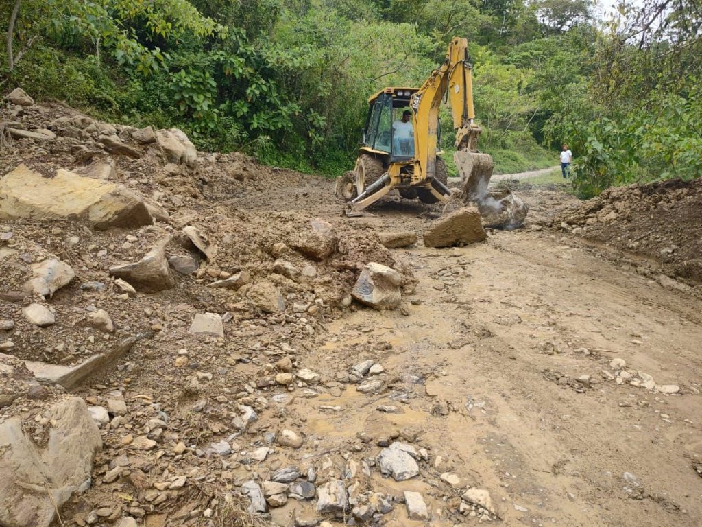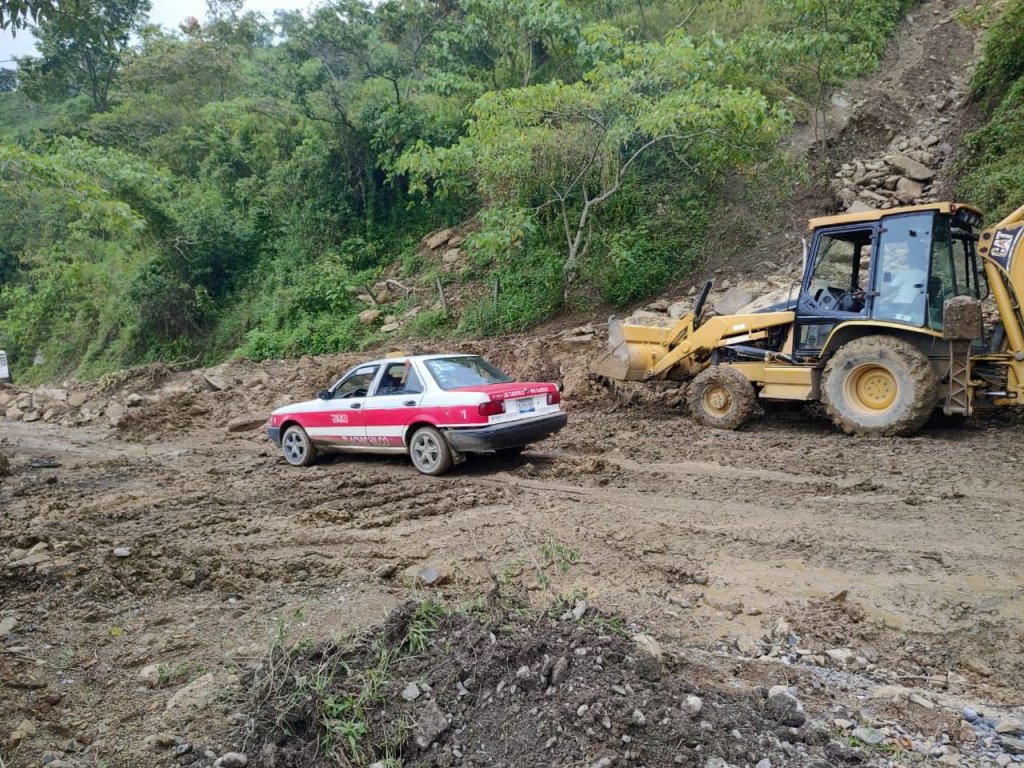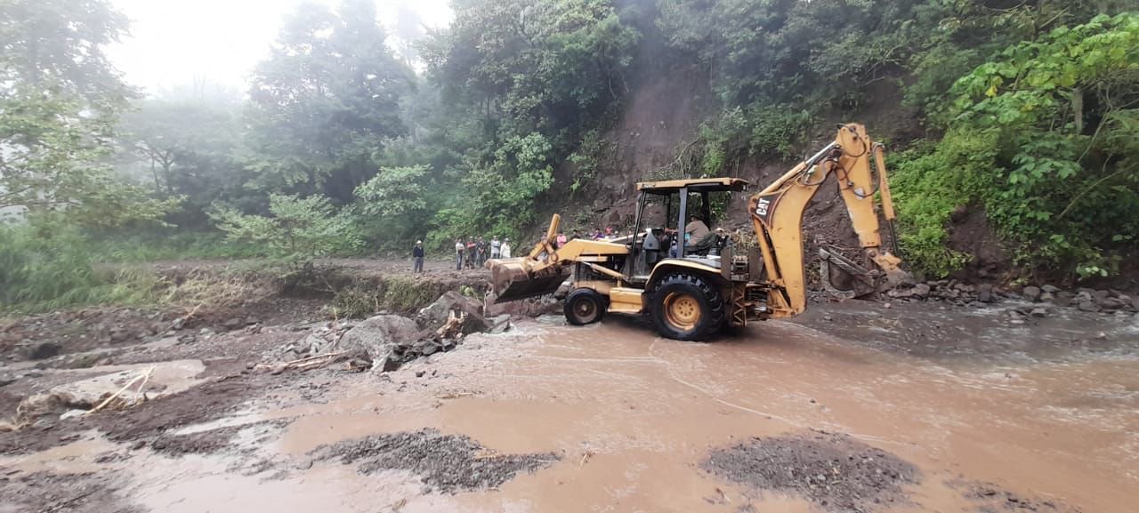 Debido a los escurrimientos de lluvias, en la comunidad El Huérfano, maquinaria ha liberado un par de derrumbes que obstruian el acceso principal a la localidad.